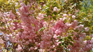 I saw pink under Tootsie's paw and investigated expecting to see blood but found a cherry blossom petal, which had bloomed beautifully in spring.