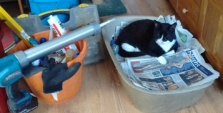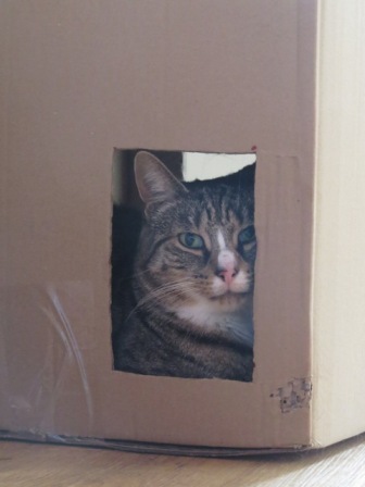 We all know cats love boxes and Tootsie is a particular fan of getting inside any container as soon as I put something down. So she helps herself to biscuits from the cat bin when the lid is off, as well as sitting pretty in other objects ( the litter tray was clean ! )